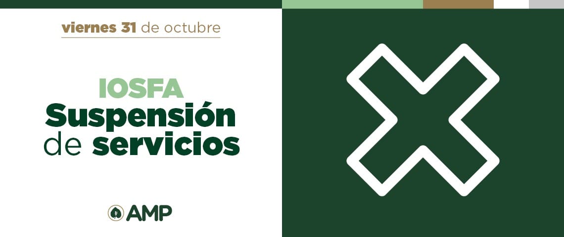 Se comunica a los médicos agremiados que a partir del día viernes 31 de octubre, se suspenden los servicios de la siguiente obra social debido a falta de pago e incumplimiento de convenio vigente. La suspensión se mantendrá hasta que se regularice la totalidad de lo solicitado: